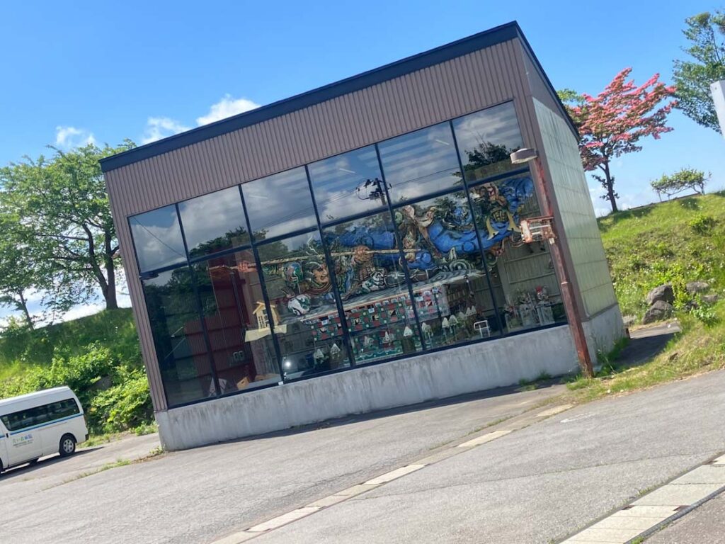 登る道中。巨大なねぶたが保管されている。圧巻。