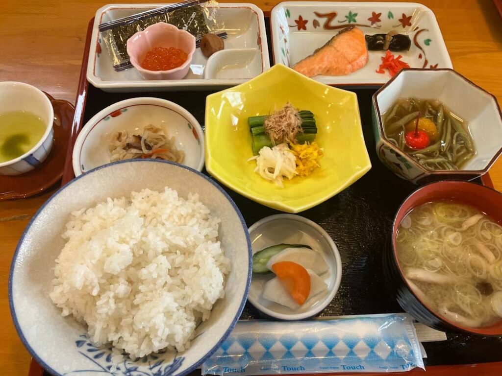 鷹ノ巣の駅のそばにあるビジネスホテル八木の朝食。立派。有難い。