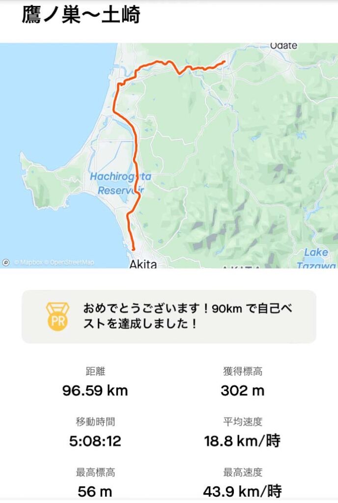 サマリーは96.6km。ライブがある日なんだから60kmくらいにしとくつもりが調子がいいので100km近く走ってしまった。明朝はここから南に向けてスタートとなる。